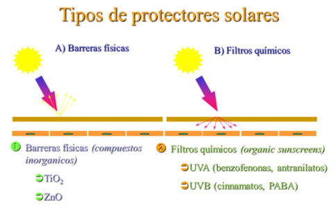 Dentro de la luz solar, además de la luz visible (la que ven nuestros ojos) y la infrarroja (la que produce la sensación de calor, existen tres tipos principales de radiación UV: UVA, UVB y UVC. Los UVC, son letales para la vida, pero son retenidos, por suerte, por la capa de ozono que se sitúa en la estratosfera entre los 15 y los 35 kilómetros de altitud. Los UVB, también dañinos son los responsables de las quemaduras solares intensas y también pueden contribuir al desarrollo de cáncer de piel y se detectan con relativa intensidad en zonas muy expuestas al sol como son las altas cumbres de montaña, zonas de nieve o junto al mar. Los rayos UVA son los más abundantes dentro de la radiación que nos llega del sol, y aunque menos energéticos, pueden penetrar profundamente en la piel causando daños a largo plazo, como arrugas y pérdida de elasticidad (envejecimiento), o incluso daños mayores si se asocian a fotosensibilizadores. Los individuos de piel obscura poseen un protector natural que es la melanina que les protege de la radiación solar. Los individuos de piel clara o muy clara carecen de melanina y son particularmente vulnerables a los efectos dañinos de la radiación, sobre todo del cáncer de piel (melanoma).