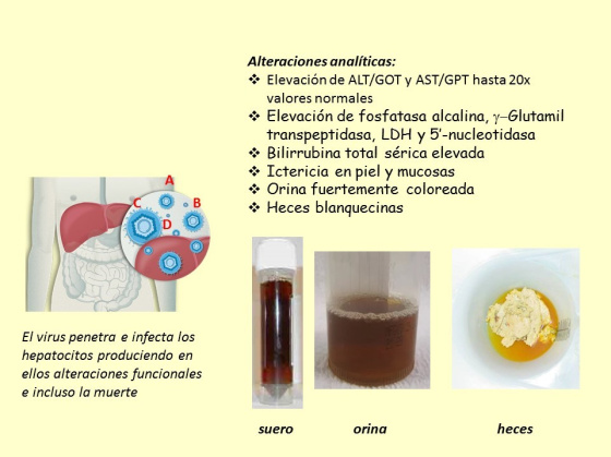 ¿Cómo se manifiestan las hepatitis virales? Los virus que causan las hepatitis por su afinidad infectan principalmente a los hepatocitos, causando en ellos importantes disfunciones que les llevan a su muerte y rotura lo que hace que se eleven notablemente las transaminasas en sangre (ALT/GPT, AST/GOT),> 1000UI/l. La relación AST/ALT sérica normal es ≤1 y aumenta con la severidad del daño hepático. En la hepatitis vírica; AST/ALT > 2. Otros enzimas como la LDH y 5’nucleotidasa se hallan también elevados.