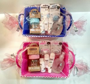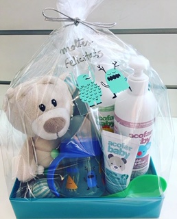 Creación y decoración de canastillas personalizadas con productos para bebes y madres.
