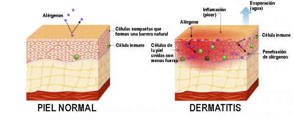 Al no estar bien unidas permiten la penetración de alérgenos y la evaporación de agua, lo que produce inflamación y picor.